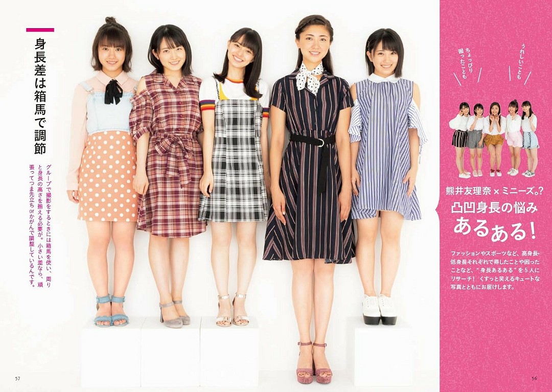| 2018年10月15日 「コンプレックスにサヨウナラ!」発売。 ハロプロOGである熊井友理奈と、 現役ハロプロメンバーでも背が小さいことでも愛されている4名 モーニング娘。’18 の13期メンバーから横山玲奈、 14期メンバーでカントリー・ガールズ兼任の森戸知沙希、 アンジュルムから上國料萌衣、 カントリー・ガールズ/アンジュルム兼任の船木結 の「ミニーズ。」 |